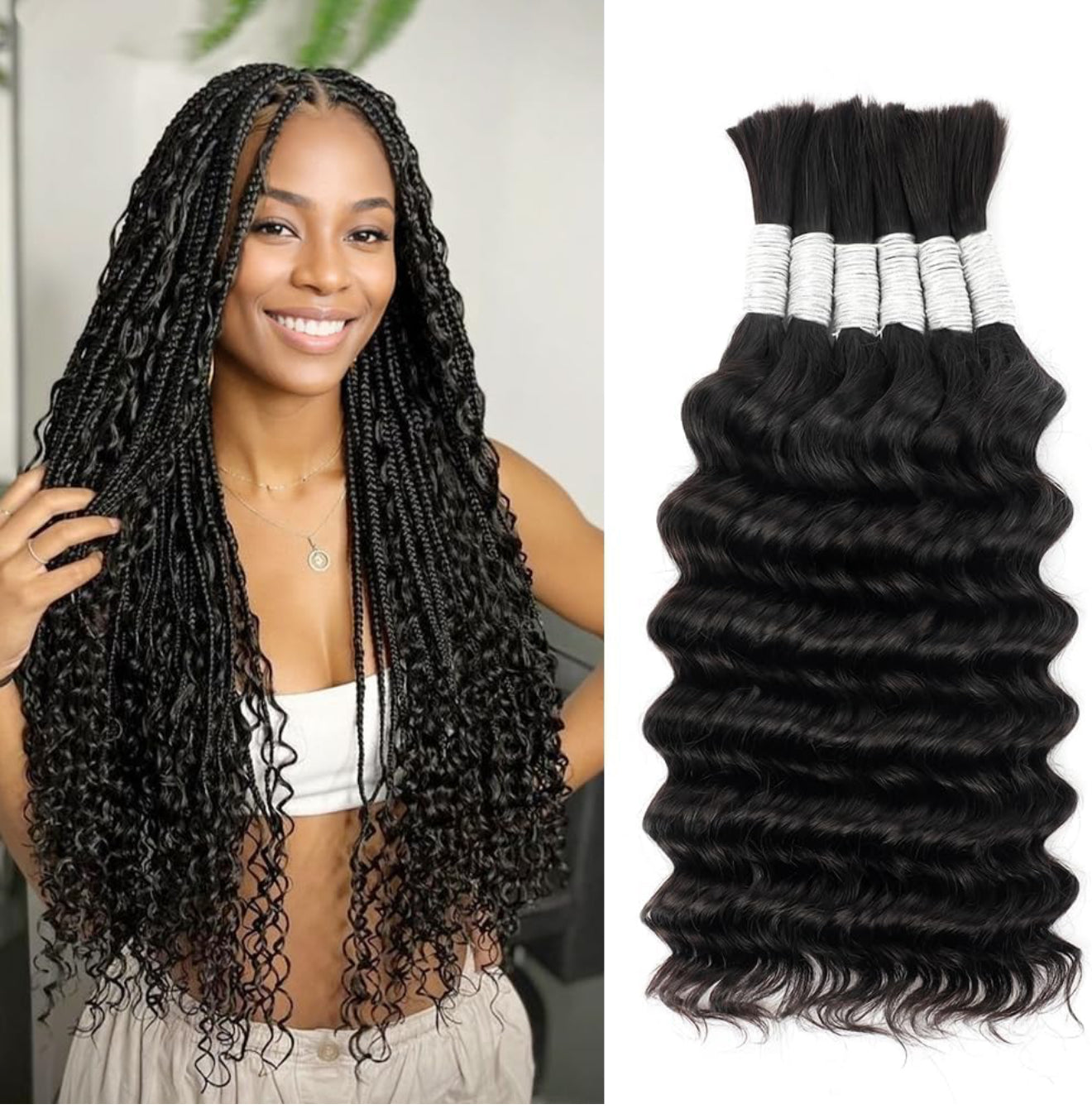 Human Braiding Hair for Boho Braids 12A Deep Water Wave Bulk Human Hair for Braiding No Weft Wet and Wavy Curly Human Hair Extensions (1B-Natural Black-Deep, 110g-22 Inch)