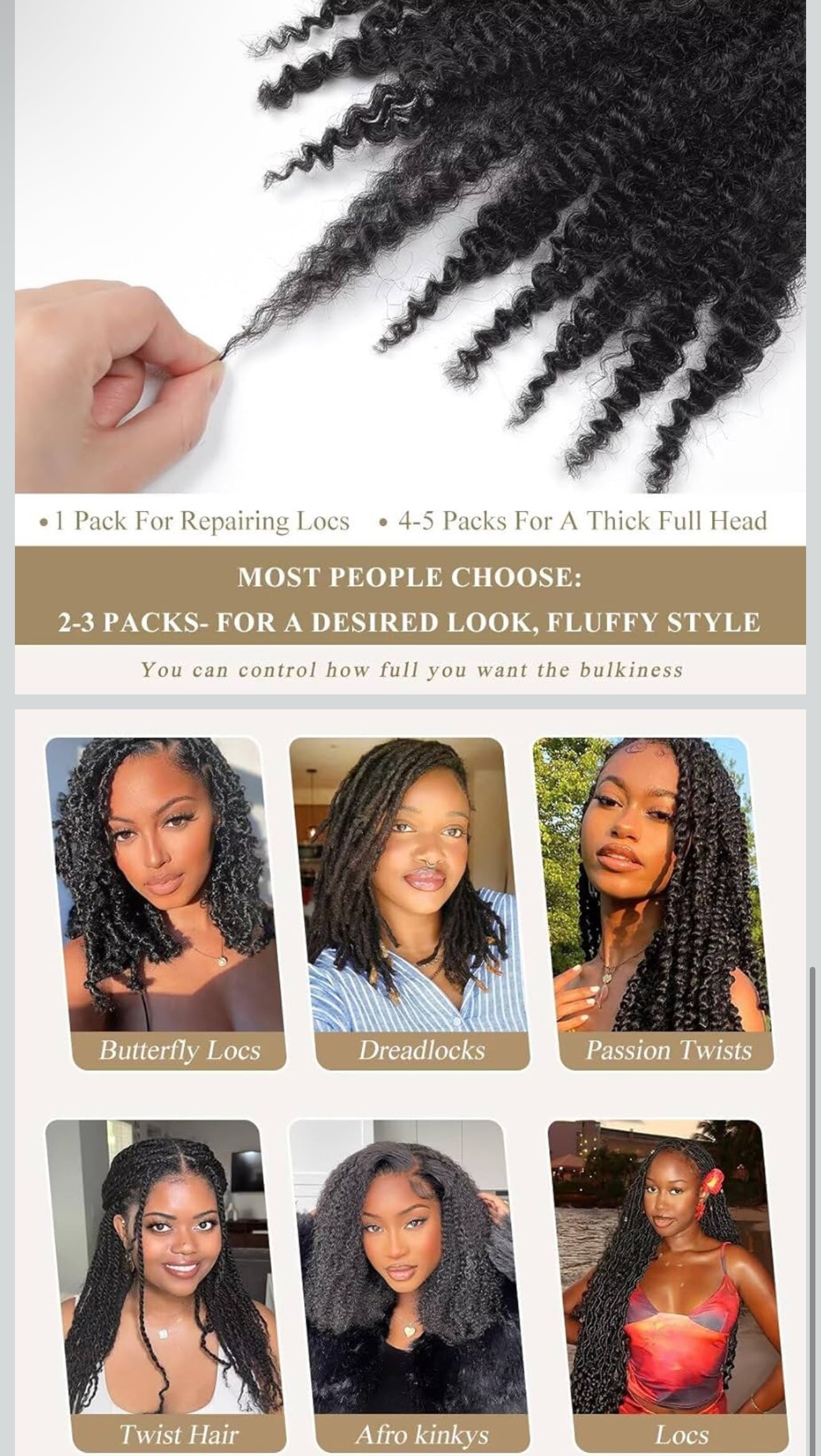 Human Hair Bundles Spring Twist Hair Afro Kinkys Bulk Human Hair Bundles 14 Inch Pre-Separated Springy Afro Twist Hair Cuban Twist Crochet Hair Marley Twist Braiding Hair Dreadlock Extensions 4 Bundles 60g 1B