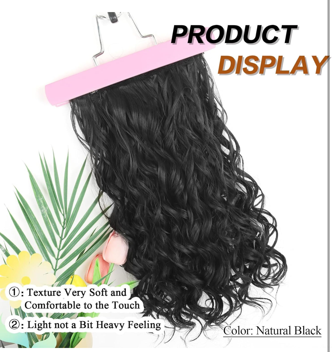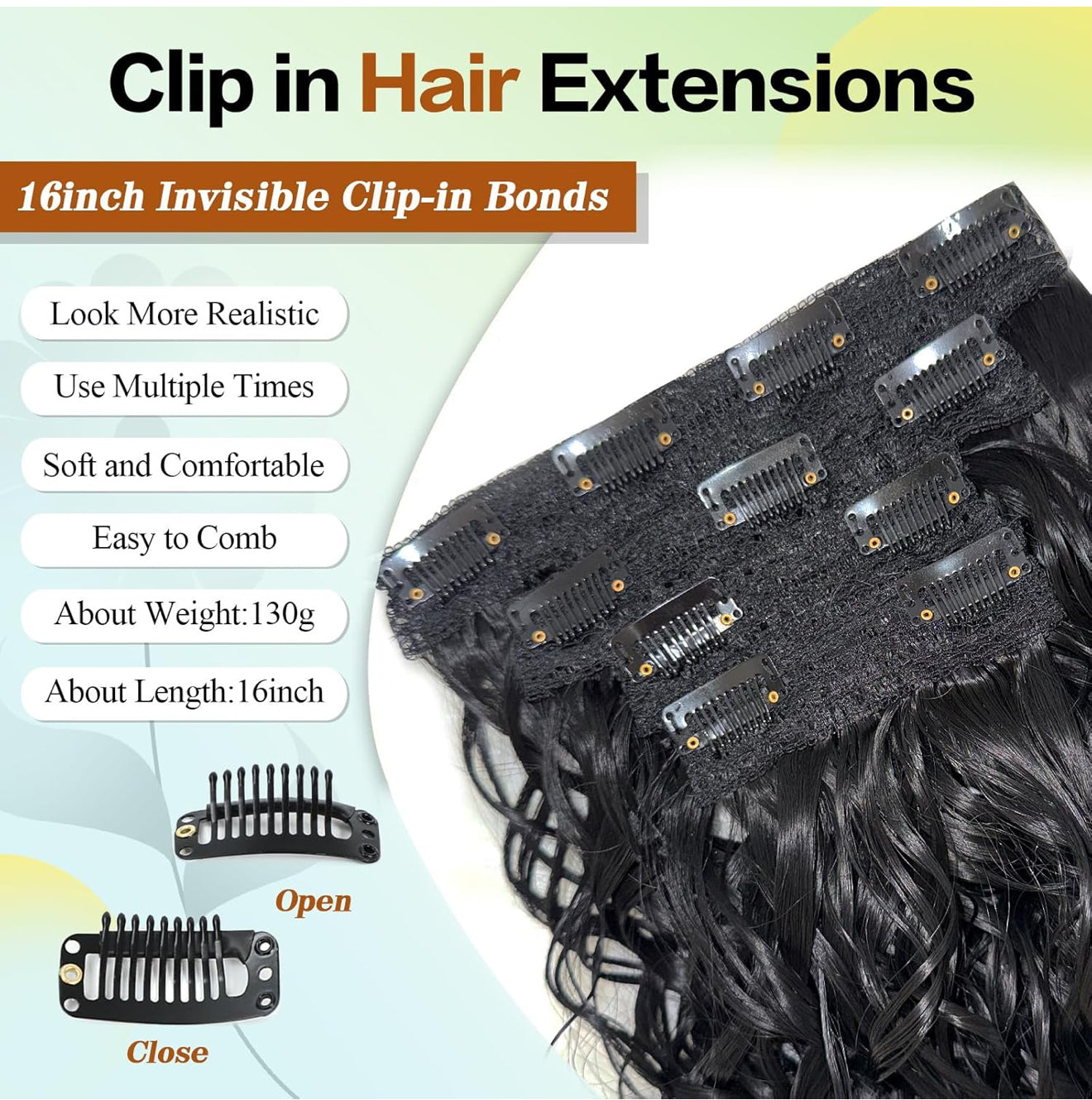 Curly Hair Extensions,LEOSA 4PCS 16 inch Clip in Hair Extensions Short Soft Natural Hairpiece Lace Weft Curly Wave Clip Ins Extensions Invisible for Women,Natural Black